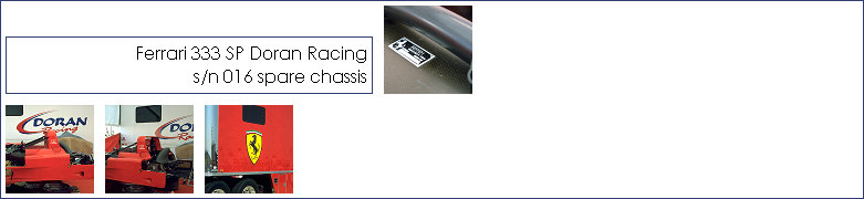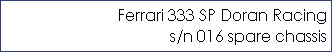 Number plate of 333 SP s/n 016, spare chassis of Doran Racing