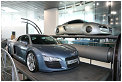 Knowing this it is no surprise to see cars, bikes and motor bikes named Horch, Wanderer, DKW, NSU, Auto Union and for sure Audi itself in the permanent exhibition of the museum mobile as all these brands are part of the heritage of Audi as we know it today. This permanent exhibition is located on the two top floors rounding the atrium. Beeing designed as galleries they are flooded with light though the skylight in the middle of the building and the large glass front on the outside.