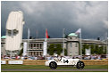 Jaguar celebrated 50 years of the legendary E-Type. Every year one manufacturer has the honour to put up a sculpture in front of Goodwood house as a landmark of the event. This year a huge E-Type build from tubes of steel was designed by Gerry Juddah who was also responsible for the previous installations. Jaguar had its own class on the hill with C-Type, D-Type, modern racers of the “Silkcut”-era and not less than 3 lightweight E- Types.
