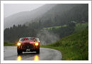 The weather did not change overnight so the next morning started grey in grey but this day the rain started earlier on the first miles over the Postalm and should not end until the later afternoon so the entrants had to drive well over 8 hours in the rain that day. Those with closed cars had to fight with fogged windows, those with a soft top found out where theirs are leaking and those without any weather protection in rain overalls and helmets had not just to challenge the time trials but also to keep the roadbook in a dry and readable condition. Unfortunately the weather also meant that the usual enthusiasm of the locals was rarely seen, just a few supporters had set up their ale-benches in tents or covered wagons to encourage the classics on their way through the rain to the lunch stop on the town square of Steyr. After a short stop and a refreshment including a hot cup of coffee the second part of the day led south again and all of the sudden the sun came out when the convoy drove over the Hengstpass before the next control point at the Spital am Pyhrn. Within a few minutes all the clouds disappeared and the cars drove under a blue sky for the last 3 hours of the day, all the hoods came down and the drivers enjoyed the warm sunbeams compensating for the last hours in the rain. With the improvement of the weather also the spectators came out giving an impression of the enthusiasm of the locals for their Ennstal-Classic. The last cars arrived at 8 pm at Schladming to start with the evening reception , the “Ferrari Night” and some of the participants arrived late at night at their hotels where the impressions and their positions in the ranking were discussed with a glass of beer or wine.