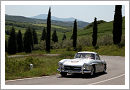 The first car to leave the ramp this year was the 1952 Jaguar C-Type that was reunited with Sir Stirling Moss and his co-driver Norman Dewis to celebrate the 60th anniversary of its original entry. In the next 2 hours about 370 cars left Brescia for the first leg to Ferrara that was once again the arrival of this year's MM after a few years of absence. Unusual for the Mille Miglia all cars could drive the first day in the dry as a rain shower during the start is almost tradition. A good reason to visit the start is for example the Mercedes-Benz 300 SLR that was once again driven by Jochen Mass joined by Mick Walsh, the editor of „Classic & Sports Cars“. The SLR might be the best sounding car with its straight eight engine with desmodronic driven valves and the small side pipes and Mass surely knows how to drive it accelerating down the straight. Wherever the car is coming by the following 3 days one could hear it miles in front with its characteristic roar especially in the mountains.