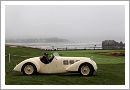 Again almost 250 cars entered in the concours plus many cars on exhibition only (like the Alfa Romeo 8C armada that will start its tour on Monday) were set up early in the morning at the 18th green of the renowned golf course. They were awaited by countless early visitors who arrived at the Pebble Beach Lodge well before sunrise to welcome the first entrants on the field at 6 am. During the next hours the cars are set up on their well planned spot sorted by class and guided by the countless volunteers in the golf carts. After one week of sunshine (what is rare for this time of the year in the Monterey Bay area) today the weather was as expected by the experienced concours visitors with fog in the morning and sparingly sunshine over the day. It was also easy to see that the field filled earlier with visitors than the years before as it seemed already packed at 7 am when it was not even open to the public.