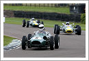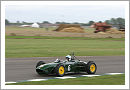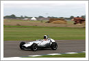 The second sports car race on Sunday, the Sussex Trophy even started in the wet as the rain did not stop after the RAC TT Celebration as it did two years ago. Anthony Reid in the long nose Jaguar D-Type had a good start taking the lead into the first corner followed by Emanuele Pirro in the Kobbly-Lister-Jaguar, pole sitter Julian Majzub was just 15th at the end of the first lap. Started at the 19th position Rick Hall on Maserati 300S finished the first lap on sixth position to catch up with Reid by half of the race distance leaving the last 7 laps a duel between those two with various changes in the lead with the better end for the Jaguar giving Reid the victory he just lost on the last laps of the RAC TT Celebration.