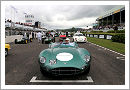 Beside the GT cars and several classes of open wheeled Formula cars the Revival usually features two sports car races divided by the year 1955, the cars before that date in the Freddie March Memorial Trophy and the later in the Sussex Trophy. In memory of the 9 hours Goodwood race the Freddie March Memorial Trophy was intended to race into the sunset on Friday evening in a 90 minutes two-driver race. Unfortunately the weather on Friday evening was very bad and due to the clouds it was already almost dark when the race started at 6:20 pm. When the rain set in it became soon clear that the race could not run over the full distance and it was shortened to one hour. What was intended to be one of the highlights of the weekend was finally chequered flagged in front of almost empty grandstands as most of the spectators left when the rain started. The race was dominated by a trio of Jaguar C-Type with the first of the featured Aston Martin coming home fifth.