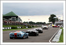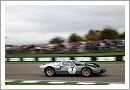 The main race of the weekend is without doubt the RAC TT Celebration, a two-driver 1 hour race for GT cars from 1960 to 1964 in the spirit of the original RAC TT of that period. Back in the 1960s these races were all won by the Ferrari 250, either as SWB or GTO, today this is one of the most valuable grids of the entire weekend with the three variations of the GTO (62-type, 64-type and 4 Litre version), some Aston Martin DB4 GT, Ferrari 250 GT SWB, AC Cobra and Lightweight E-Types. After two practice sessions on Friday and Saturday the race saw two AC Cobra in the front row with Jean Alesi in the Ferrari 250 GTO/64 in between. When the cars were waved off the Ferrari was in the lead at the first corner but Jean Alesi was later penalised for a jump start. During the first laps no less than 6 cars drove within 2 seconds in a close wheel to wheel battle until the safety car came out for the first time in lap 6. When the race was green flagged again 7 cars pulled away from the field, after lap 12 the first cars to enter the pits for the drivers change included the Aston Martin Project 212 handed over by owner Wolfgang Friedrich to Simon Hadfield, during this period the Aston was running somewhere in the back of the field but still within the same lap as the cars in front. In the next laps more and more cars came into the pits before another safety car phase sorted the field after the pit stops. The Lister-Jaguar Coupé driven by Anthony Reid stayed in front and pulled away when the pouring rain set in just like two years ago. In very difficult conditions the only car in the field driving the same speed was the Aston Martin of Hadfield, coming from tenth position after all driver changes the car made its way through the field about 20 seconds behind the Lister being forth in lap 28, just two laps later he was already second closing up to the leading Lister in just two further laps. During this period Hadfield was the only one who could keep his lap time at the low 1:50s whereas most of the other cars were lapping just less than two minutes. Just on the start-finish line on the second to last lap the Aston took the lead, one lap later he was already leading with more than 10 seconds ahead of the Lister who secured second place ahead of the father-son team of Grahame & Oliver Bryant in the pole-sitting AC Cobra.