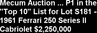 1. Lot S181 - 1961 Ferrari 250 Series II Cabriolet $2,250,000