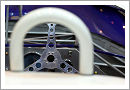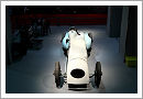 Less violent by not less archaic are the two examples on display of the land speed record cars in between the wars. As long as people are building cars they were used for all sort of competition and speed record were a question of national prestige and not few lost their life by achieving ever increasing records in simple chassis layouts powered by huge engines. The most popular victim might be Bernd Rosemeyer whose obit was in late January 1938 but he shares this fate with many others just as the story of “Babs” shows. Built by John Godfrey Parry-Thomas this special was powered by a 27 litre V12 Liberty aero engine and took several records before its final run in March 1927. After Parry-Thomas lost his record to Malcolm Campbell in his famous Bluebird he took Babs to a last record run on Pendine Beach in Wales were the 600 hp monster flipped at about 270 kph instantly killing him. The car was buried at the beach to be resurrected in the late 1960s to be restored to running condition as it is displayed today. It was just seen at Paris alongside one of the earlier Campbell Bluebird record cars that was challenging Babs, the 350 HP Sunbeam of the National Motor Museum.