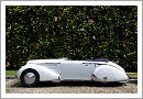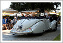 Star of this class was the small Alfa Romeo 6C 1750 Grand Sport with Aprile Spider body brought by Italian architect Corrado Lopresto. Known for his exquisite collection of Italian one-offs and prototypes Lopresto already showed his latest treasure on the other side of the Atlantic but it was on home pastures where the car shone most. With very elegant lines the car was a crowd puller and it did not just win its class but also every public vote possible, from the Coppa D´Oro at the Villa D´Este to the public vote at the Villa Erba and certainly the kids choice award, not surprisingly with its lovely smile of the radiator inspired by the latest Alfa Romeo racer, the Alfetta. The Aprile Spider was originally born as a “standard” 6C 1750 GS Zagato but after a crash in the late 1930s the car was rebodied to the current form by Aprile. When Lopresto acquired the car a total restoration was needed and presenter Simon Kidston pointed out at the award ceremony in front of the hotel that Lopresto and his restoration team put in some efforts to find the original blue colour. As the car was repainted later in its life and the original pictures were all black & white it was the analysis of the blue colour on the Alfa badge on the pictures and its comparison to the paint to get the right shade of blue. Certainly this would have been also a deserved winner for the Best of Show as it was maybe the only true Concours car in its best sense but most likely the rebody to a later design was not to the taste of the jury. Less aerodynamic and certainly miles away from the Aprile design was the Mercedes-Benz 500 K Cabriolet A with work body. The Mercedes still featured the huge vertical radiator in V-shape that was the trademark for the supercharged cars both of the six- and the eight-cylinder line. Still the clean design of the two-seater cabriolet with the floating rear was a first sight of streamlining in the 500K although this was certainly more of aesthetic reasons than to reduce the drag. The same could be said for the Bugatti T57 as the Ventoux by Gangloff also features the typical vertical horseshoe radiator.