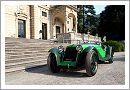 Oldest example was the glorious 1929 Maserati V4, a sixteen cylinder racer designed of two straight eight engines with their crankshafts geared together. With 4 litre displacement this engine produced no less than 300 bhp making this the fastest road going sports car of its era. The V4 was driven by Borzacchini and Fagioli both in 1930 and 1931 as well as setting a speed record of more than 150 mph for a road car. This wonderful Zagato designed Maserati was just shown at Amelia Island in March where it received a late invitation to Como and fortunately the owner brought the car over to Europe. Unfortunately the Maserati was very fuel and tyre consuming in its time but it set a lap record on the high speed Monza circuit lasting for almost 25 years showing its potential, this is certainly one of the most important Maserati of this Era when the Maserati brothers were purely building sports and GP race cars.