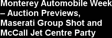 On Monday on can take a last deep breath before the action really starts with several events every day. Tuesday will see the Concours on the Avenue, Wednesday the auction previews  of no less than 6 different auction houses having the most expensive line-up ever in Monterey with almost 600 Million $ estimated. In the afternoon the official cover shot of this year Motorsport Reunion will be set up at Laguna Seca with a great selection of Maserati celebrating the centenary before the McCall Jet Centre Party will finalize the day.