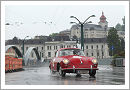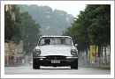 After a very rainy event in 2013 the three organisers Gert Pierer, Hermann Schwarz and Thomas Matzelberger were seen at last year’s award ceremony in wellies and surely they did not expect to need them again this year but the weather forecast was again very bad. So it was not a surprise that the scrutineering at Schloss Hellbrunn (famous for its water garden) proceeded a little bit trudging as few of the 150 entered cars were brought by their owners outside earlier than necessary. After all of them got their race number and the essential transponder the cars were escorted to the Residenzplatz at the Dome were they were expected by an interested crowd despite the increasing rain. Traditionally the Ascension Day is the first day of the Gaisbergrennen as this is the only day that allows a closure of the roads and the bridges over the Salzach for the city grand prix where the cars are sent out for the first regularity trial, fortunately all of the drivers were very disciplined on the slippery roads and so it was left to Röhrl to entertain the spectators with some wild drifts.