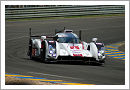 Germany 2 - Japan 1, no not the FIFA World Cup, but the podium for the 82nd running of the 24 Heures du Mans, when Audi triumphed for the 13th time at La Sarthe, bringing two of its three cars home in the top two positions, whilst Toyota, who had won the two opening rounds of the FIA World Endurance Championship, had to be content with 3rd overall. However, it was not an easy victory for Audi, and particularly their mechanics, as after the # 1 car was destroyed in a horrific high speed accident in the Porsche Curves in the Wednesday evening practice session, whilst being driven by Loic Duval, it was necessary to rebuild (what was left of) the car into a new tub. Amazingly, and fortunately, the driver escaped serious injury, but was ruled out of participating in the race by the medical commission, thus Marc Gene was drafted in from the LMP2 Jota Sport team, to replace him, and his place in the # 38 Zytek Z11SN-Nissan was taken by Oliver Turvey. Another practice accident victim was the # 71 AF Corse entered Ferrari 458 GT2, which crashed heavily whilst being driven by James Calado, who was also ruled out of the race by the medical commission, and who was replaced by Pierre Kaffer.
