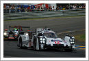 The previously mentioned rainstorms, eliminated the # 3 Audi and the # 81 Ferrari, and seriously delayed the # 8 Toyota, whilst there were plenty of others who suffered from spins and some tyre wall and barrier contact, but managed to keep going. The pole sitting # 7 Toyota maintained the lead through the storms, and through the first 14 hours of the race the lead swapped between this car and the # 20 Porsche, before an Audi headed the leader border, this being the # 2 car, which took the lead a fraction before 5.00am on Sunday morning. It was briefly headed by the sister # 1 car, but then that suffered a turbo failure, demoting it to 2nd place, while the pair of Porsches fell by the wayside, the # 14 car eventually making a final lap at the end to be classified, and the # 7 Toyota was eliminated by a fire just after 5.30am on Sunday morning, leaving the recovering # 8 Toyota to continue its eventual recovery to 3rd place overall. It was 5 laps down on the winning # 2 Audi of Fassler / Lotterer / Treluyer, which was the trios 3rd Le Mans 24 Hour Race victory and 4th podium finish, and at the same time bringing Audis total to 13 wins, the last five being consecutive. Although Tom Kristensen was unlucky not to get his 10th Le Mans win, he finished 2nd with Luca Di Grassi and Marc Gene, and increased his podium finish tally to 14.