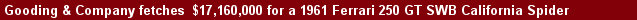 1961 Ferrari 250 GT California SWB Spider (closed headlight) sold for $17,160,000 |