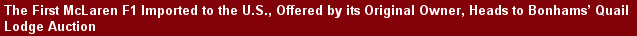 The 1995 McLaren F1 will be offered on Friday, August 18th at Bonhams’ Quail Lodge Auction in Carmel, California. For more detailed information about the McLaren, as well as the incredible array of other rare and important collectors’ cars assembled for the sale, please visit