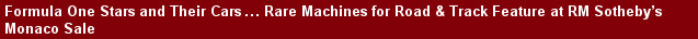 Formula One Stars and Their Cars … Rare Machines for Road & Track Feature at RM Sotheby’s Monaco ...
