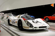Another example of this philosophy is the extremely thin plastic-fibre body of the short-tail Porsche 908 Coupé built in 1968 and illuminated from inside, weighing a mere 130 kg or 287 lb.