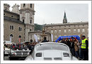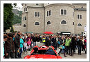 The 177 cars had to come for the scrutineering in Schloß Hellbrunn on Thursday morning where they got their race numbers, a transponder and the drivers were briefed for the following event. As mentioned above the cars were escorted by the Police to the city center to be lined up at the Residenzplatz were speaker Walter Zisper introduced every car to the waiting public. The weather looked very much the same as last year and nobody knew whether it would rain or not. But fortunately it stayed dry all the afternoon much to the pleasure of the numerous visitors around the track. The cars started in small groups to do 5 laps in given time and as the cars were started time-displaced there was a steadily changing field on the road. The track is about 1.8 km long were two straights with a chicane each connect the two bridges over the Salzach. The day ended with the opening evening at the Zistelalm at the Gaisberg.