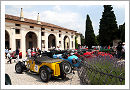 The scrutineering starts on Thursday afternoon in the small village Romano d´Ezzelino near the name giving Bassano del Grappa and when arriving on Friday morning at the small yard behind historic buildings several cars are already parked there over the night, the others come in during the morning hours. 105 cars where entered this year varying from small Erminis, Morettis, OSCAs to very sportive Ferraris and Maseratis on the Italian side and ACs, Lotus and Healeys on the British side. As many of these cars were seen in the past at the Mille Miglia it is obvious that some owners go for these more familiar events as the MM became to commercial.