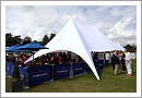 white tents and the different sponsor booths surrounding the main