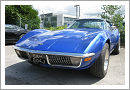of a pair of Corvettes, one classic and the other modern, a Ford