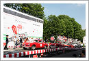 Most notable was the display of Mercedes-Benz celebrating the 60th anniversary of Sir Stirling Moss record run at the Mille Miglia 1955 in the most successful year of motorsport of the company with the three-pointed star winning not only the F1 championship but also the Wold Sportscar Championship with the legendary 300 SLR. No less than three of the straight-eight SLR from the factory museum were lined up in the streets of Brescia wearing the Mille Miglia race numbers of Moss, Fangio and Herrmann (although just one of them actually drove the original MM) and the two remaining works drivers Moss and Herrmann even opened this year’s race from the ramp joined by Susie Wolff in the third car. At about 3pm the first cars, traditionally from the first winning marque OM were sent off for the 1000 miles in the next three days. Due to the sheer amount of cars there was not much time apart from a few empty phrases to introduce the cars and their drivers but most of the cars did not need an introduction anyway being regular entrants of the race.
