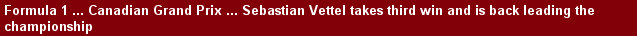Formula 1 ... Canadian Grand Prix ... Sebastian Vettel takes third win and is back leading the championship