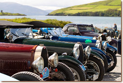 On Tuesday the 4th the cars arrived at the Dunloe Hotel & Gardens in the South-West on the green island. Few were delivered by the Cars Lorries, some on trailer and many on their own wheels as many participants started their journey at the Owners Club own hill climb event at Prescott as held the last weekend. After the Ferry-crossing the cars faced a lot of rain and so the very warm welcome by the other Bugattisti and the excellent hotel staff were more than appreciated. The annual meeting is somehow a class meeting as most of the entrants know each other for ages as with minor changes the entry list is somehow the hard core of the clubs. As expected the parking lot did show more of the smaller cars as nowadays the Type 57 is more common on the concours events were the main focus is more “matching numbers” rather than driving events were the cars have to be authentic as show by several “bitsas” with Bugatti Club numbers. In Ireland the drivers were more important enjoying their beloved “family member” rather than comparing the value or importance of the cars. The organizers called this meeting “by friends for friends” that summed up very much the relaxed atmosphere over the week, at the dinners one was looking unsuccessful for ties and jackets as the casual look just matched the character of the meeting.