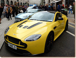 models, including Aston Martins and Ferraris, together with a line-up of Jaguar E-types, celebrating the 60th