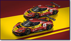 Ferrari 458 GTE, and a 1963 Ferrari 250 GT Lusso. |