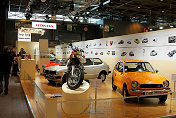 Novelties, Themes & Anniversaries – A new venture this year was a procession of classic cars running from beneath the Eiffel Tower through some of Paris’ major boulevards on a 30km route to the show on the opening Saturday morning, with models ranging from a 1931 Ford Model A through British classics like the MGA, to a Corvette and Facel Vega. One of the major themes of this year’s show was “Les Femmes et l’Automobile” (Women and the Car) with examples of women’s motoring fashion over the years, cars driven by well known female celebrities, plus period photographs and accessories. “60 Ans de Jeunesse” was the phrase which heralded the 60th anniversary of the launch of the Citroen 2CV on the French market, the corrugated “shed” with its small flat twin engine, that took motoring to the masses, which has become a classless classic. There was also a celebration of the 30th anniversary of the BMW “M” series, which started with the M1 model presented at the 1978 Paris Salon. Today the Peugeot marque is associated with mainstream models, but over the years they have produced a number of luxury cars, and they presented a selection of these just inside the main entrance, to illustrate their rich and varied history.