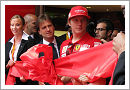 The latest in the worldwide chain of Ferrari Stores was officially opened by Ferrari F1 team driver Kimi Raikkonen on 06 May 2009, who cut the ribbon at 11.00am. The ribbon cutting ceremony was preceded by a parade of a dozen Ferraris through the streets to the store, ranging from a 250 GT LWB California Spider to the latest California Spider, with  a complete set of supercars, GTO, F40, F50 and Enzo, plus Nick Mason's 250 GTO, which had their own cordoned off parking area just around the corner from the store. Word must have leaked out about Kimi's arrival, as there were large crowds lining the specially erected barriers along the edge of the pavement, and when he arrived it was the usual photographer's bun fight to scramble for the best location.