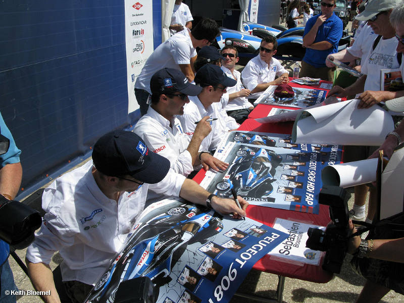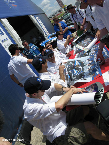 After the practice and qualifying sessions, the grid is set for Saturday's race. In the P1 class, it was the # 66 Acura ARX 02a of de Ferran/Pagenaud/Dixon which stole the pole position from the # 2 diesel powered Audi R15 of Capello/McNish/Kristensen and the Peugeot 908 of Minassian/Lamy/Klein. Scott Dixon set the fastest time in the Acura, with a 1min 45.278secs, but that was only 0.082sec quicker than the Audi, and only 0.184sec quicker than the Peugeot, so all things being equal it should be a closely fought race for overall honours, especially as the five quickest cars are only covered by 0.281sec.