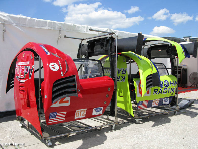 In the P2 class it was another Acura that took the class pole, this time it was the # 16 ARX 01b of Fernandez/Diaz, whilst the Beretta/Gavin/Faessler Corvette C6R beat the sister car of Magnusson/O'Connell/Garcia to the class pole, these being the only two GT1 class entries. In the GT2 group the class pole went to the # 87 Henzler/Werner/Lietz Porsche 911 RSR of the Farnbacher Loles Racing team, ahead of the # 45 Flying Lizard Motorsports example of Bergmeister/Long/Lieb. Taking 3rd spot was the AE Pecom Racing Team's # 95 Ferrari F430 GT, driven by Companc/Russo/Bruni, whilst the # 62 Risi Competizione example will start from the back of the grid, as driver Jaime Melo was delayed in Italy with visa problems, and didn't arrive in time for qualifying.