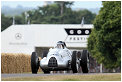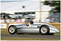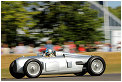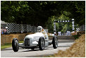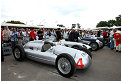 – As the traditional sculpture on the lawn in front of Goodwood House is the main focal point, let’s start with that. Last year it was a complex girder structure celebrating Land Rover, and this year it was the complete antithesis, a simple but beautiful grey swept crossing arc to celebrate the centenary of Audi, with a thirties Streamliner at one end and a R8 Coupé at the other. 2009 is also the centenary of Morgan, and there was a line- up of their cars on the walkway up to the drivers club. It was also the centenary of Bugatti with a fine selection of cars from the company’s history, ranging from a Type 16, through a Type 35C, Type 54, and Type 59 to a pair of the latest Veyrons. Another anniversary was 40 years of Frank Williams in Formula One, with a display of their F1 cars in the F1 paddock, including the FW11B in which Nelson Piquet won the 1987 Drivers’ Championship, and the 1996 FW18 which Damon Hill drove to his Drivers’ World Championship. Another 40th anniversary was that of Matra’s first Drivers’ and Constructors’ Championships with Jackie Stewart and the MS80 respectively. One more 40th anniversary was that of the legendary Porsche 917, with a great display of variants in the F1 paddock. There was also a celebration of 75 Years of the Silver Arrows, featuring a superb display of Mercedes-Benz and Auto Union Silver Arrows cars in the F1 paddock, which were demonstrated throughout the weekend by the likes of David Coulthard, Jacky Ickx, Jochen Mass and Sir Stirling Moss. Audi Tradition also had a strong presence in other classes, including examples of their R8R, R8, R10TDI and R15 TDI in the Legend of Le Mans Class, a pair of Quattros in the International Rally Cars Class, an R8 LMS in the Contemporary GT Racers group, DTM saloons, the Quattro “Pikes Peak”, plus the 200 Quattro TransAm and the 90 Quattro IMSA GTO. There were also a pair of Quattros in the Legendary Group B Rally Cars group.