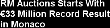 “RM’s inaugural Monaco sale has set a new standard for collector car auctions not only for the high quality of cars, but also for its impeccable presentation and client experience. Two world record prices, and seven lots achieving in excess of one million euro, aptly illustrate this achievement,” said Max Girardo, Managing Director, RM Europe. “Our Monaco sales results underscore RM’s undisputed leadership position in the investment-grade segment of the collector car market.”