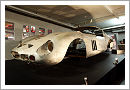 During the 1980s with the steadily increasing value of the classic Ferraris many cars were on the market and this was the ideal time to build up a collection. In the 60s and early 70s many of the today most valuable Ferraris were just used cars unable to win races any more. They started their second life in private collections with enthusiasts of the first hours, some of them were wealthy, some of them had to part with their cars when the value and therefore the insurance costs surpassed their means. Some cars did not even had the luck to be with a real enthusiast and waited to be remembered of because of their value. The 250 GTO (s/n 3589GT) in the collection was one of these cars. After its active racing career in the hands of Michael Parkes and Ines Ireland it was later donated to the Victoria High School to practice students. Even later the car ended on a trailer uncovered in a field so the car was in need of a total restoration when acquired by Engelbert Stieger in 1988. After a close inspection of the car it became clear that a reuse of the original body would have meant that a large section of it had to be replaced. Instead of ripping apart the original one just to claim it is still on the car the wise decision was made to build a completely new body. The original body was put aside and today graces the collection in unpainted form as a piece of art. Where else can one see an original GTO body including the hammer finish of the Carrozzeria Scaglietti? The new body was build exactly to the specification prior to the rebuild of the car including the air intakes on the front wings and the louvred bonnet. The car is finished in the very elegant original dark blue and a small white nose band around the radiator.