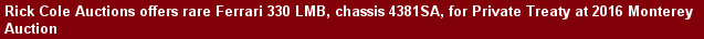 The 330 LMB offered here, 4381 SA, is the very car shown at the March 1963 Ferrari conference to launch the