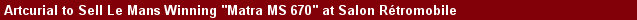 Artcurial to Sell Le Mans Winning "Matra MS 670" at Salon Rétromobile