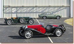 the Mille Miglia. A beautiful Bugatti Type 44 Cabriolet, which was once part of the Bill Harrah Collection, will