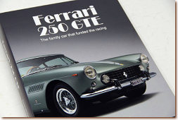 The Ferrari 250 GTE model could be classified as Ferrari’s first “mass production” model, that was introduced to the public as the pace car for the 1960 Le Mans 24 Hour Race. It was produced in a total of 954 examples between 1960 and 1963, together with 50 examples of the similarly bodied 330 America model featuring a 4 litre engine for the US market. It was also Ferrari’s first true 2+2 model, as although there had been earlier examples with a 2+2 seating arrangement, they were what might be described as rudimentary. Thus, from the large number produced, in terms of Ferrari production at the time and also in a relatively short space of time, it can be seen that it was very popular in its day. It is also the model that has suffered the ignominy of being cannibalised to serve as a donor vehicle for replicas of (today) more valuable models, like the 250 GT SWB Berlinetta, 250 California Spider and 250 GTO. Thus it is a pleasure to see that David Wheeler has gone to great lengths to produce a book on this important piece of Ferrari’s history, as without it, the finances would unlikely to have been there to fund the racing programme.