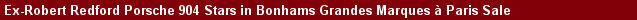 A 1964 Porsche 904 GTS, estimate €1,300,000 – 1,600,000, formerly owned by one of Hollywood's greatest names, the actor Robert Redford, is one of the stars at Bonhams Grandes Marques à Paris Sale on 3 February. Opening the Bonhams Motorcars Europe 2022 calendar, the sale will be staged in the heart of the city at the Grand Palais Ephémère, by the Eiffel Tower.