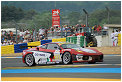 The race started promptly with a rolling start at 15.00 on a very hot (28degC) Saturday afternoon, and to the delight of a large partisan crowd the pole sitting # 8 Peugeot went into an immediate lead, and started to pull away from the pursuing # 1 Audi. There was even greater delight and a tremendous roar, when the # 7 Peugeot passed the Audi to take 2nd place. The GT1 Lamborghini, lasted only one lap before retiring with engine maladies pictures of that in action are going to be rare, whilst the JetAlliance Aston Martin went into the pits at the end of lap 1 with electrical problems, rejoining after a lengthy stop. Towards the front of the field the # 3 Audi driven by Alexandre Prémat was in trouble after only nine minutes, when he went off and hit the tyre wall at Indianapolis, returning to the pits after extrication from the gravel trap. Peugeot encountered a problem after 45 minutes, at the first round of pit stops, when their # 7 car was released into the path of the # 17 Pescarolo entered example, the two colliding, puncturing the rear tyre of the # 7 car, which had to do a complete lap, while the tyre flailed the bodywork to shreds around the track, necessitating the deployment of the safety car whilst the debris was removed. Upon eventually returning to the pits, the team changed the turbo, the FAP particle filter and oil radiator, and rebuilt the left rear corner of the car, all in around 20 minutes. Not long after it was Audis turn again or damage problems, when the # 1 car had to pit for a new nose after hitting somebody or something!