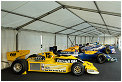 Further classes featured the eras of the cosworth engine with several Lotus, Brabham and McLaren plus the Ferrari of this time, the 312 B3 just to be followed by the turbo cars of the early 1980s. As this years Festival was again at a race-free F1 weekend several of the top teams have sent their last years cars and some of their drivers to Goodwood. This year the teams of Red Bull, Ferrari, Mercedes, McLaren, Williams and Lotus had their 2010 cars on the hill as they are not allowed to run the current cars due to the ban of test drives. Years ago Nick Heidfeld set the record on the hill at less than 42 second when he showed up in 1999 with the McLaren-Mercedes MP4/13 in full race trim, today the runs are more show with lot of burnouts in front of the grandstands. When the F1 cars are brought to the assembly area hundreds of fans are standing behind the fences to get a look on the stars and the cheer is getting even louder when the local heroes Jenson Button and Lewis Hamilton arrive. The were joined by Mark Webber, Nico Rosberg, Bruno Senna and designer Adrian Newey so autograph hunters had plenty opportunities to fill their books. But also inside the assembly area it becomes more busy than in every other class as mechanics, assistants and media are numerous.