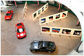 The Pantheon consists of a helix winding up 2 floors, the Ferrari special display is located on the top floor. As the name giving Pantheon in Rome the building has a round skylight giving light from the inside plus the revolving window on the outside.