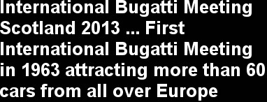 But certainly Great Britain was not the only country apart from France were Bugatti were regularly used by their owners and so the idea of a transregional gathering finally came to life with the first International Bugatti Meeting in 1963 attracting more than 60 cars from all over Europe and a few from America and even from South Africa to the Prescott head quarter. Over ten days the entrants explored the British countryside to end at Goodwood and the big success of the premiere led to an annual event being one of the highlights in the Bugatti calendar. In the following years rallies were organized by various national Bugatti Clubs with the last meetings in Italy, Austria, Spain and the Netherlands but for the 50th anniversary this year's meeting was back in the UK, in Scotland to be more concrete.