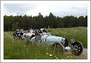 On Sunday the 16th of June almost 100 cars from all over the world arrived at the Hydro Hotel in Peebles, just a few miles south of Edinburgh. Being a long way from central Europe many of the participants used the ferry to Newcastle and after the drive up to the Scottish Borders a whole group of Belgium, Dutch and German entrants were welcomed by the already arrived British teams. As most of the entrants are regulars to the International Meeting it was a big reunion and the first stories from the last years adventures were exchanged even before the cars were unloaded from the trailers and lined-up in front of the hotel accompanied by the traditional strains of the bagpipe, the Scottish national instrument. Some of the owners have brought a new acquisition but most of the cars were well known from the previous years, a colourful mix from small Grand Prix models and some touring cars from the T40, T46 or T57 series.