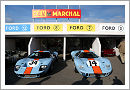 Half the age of Aston Martin is the famous Ford GT40. The story of Henry Ford II and the failed purchase of Ferrari were told very often and the GT40 was built to succeed over the Italians on the most famous race in the world, the Le Mans 24 hours. Named after its height of 40 inches the GT40 should become the most successful Le Mans racer of the late 1960s. The GT40 was entered in 1964 and 1965 but failed to finish, in 1966 the long awaited victory was achieved with the big block MKII when no less than 8 of them were lined up side by side at La Sarthe to finish an all GT40 podium. In 1967 Ford was back with the all new MKIV featuring the big engine in an innovative aluminium monocoque, in difference to the MKII that was developed by the Ford development team in Slough (GB) the new car was an all American development and winning with an American driver pairing of Dan Gurney & A. J. Foyt was all Henry Ford wanted as this ended the official Ford GT40 race programme. But the story of the GT40 continued as the very same MKI entered by John Wyer won the following two editions of the French classic.