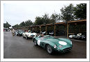 Beside the GT cars and several classes of open wheeled Formula cars the Revival usually features two sports car races divided by the year 1955, the cars before that date in the Freddie March Memorial Trophy and the later in the Sussex Trophy. In memory of the 9 hours Goodwood race the Freddie March Memorial Trophy was intended to race into the sunset on Friday evening in a 90 minutes two-driver race. Unfortunately the weather on Friday evening was very bad and due to the clouds it was already almost dark when the race started at 6:20 pm. When the rain set in it became soon clear that the race could not run over the full distance and it was shortened to one hour. What was intended to be one of the highlights of the weekend was finally chequered flagged in front of almost empty grandstands as most of the spectators left when the rain started. The race was dominated by a trio of Jaguar C-Type with the first of the featured Aston Martin coming home fifth.