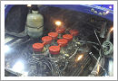 Less violent by not less archaic are the two examples on display of the land speed record cars in between the wars. As long as people are building cars they were used for all sort of competition and speed record were a question of national prestige and not few lost their life by achieving ever increasing records in simple chassis layouts powered by huge engines. The most popular victim might be Bernd Rosemeyer whose obit was in late January 1938 but he shares this fate with many others just as the story of “Babs” shows. Built by John Godfrey Parry-Thomas this special was powered by a 27 litre V12 Liberty aero engine and took several records before its final run in March 1927. After Parry-Thomas lost his record to Malcolm Campbell in his famous Bluebird he took Babs to a last record run on Pendine Beach in Wales were the 600 hp monster flipped at about 270 kph instantly killing him. The car was buried at the beach to be resurrected in the late 1960s to be restored to running condition as it is displayed today. It was just seen at Paris alongside one of the earlier Campbell Bluebird record cars that was challenging Babs, the 350 HP Sunbeam of the National Motor Museum.